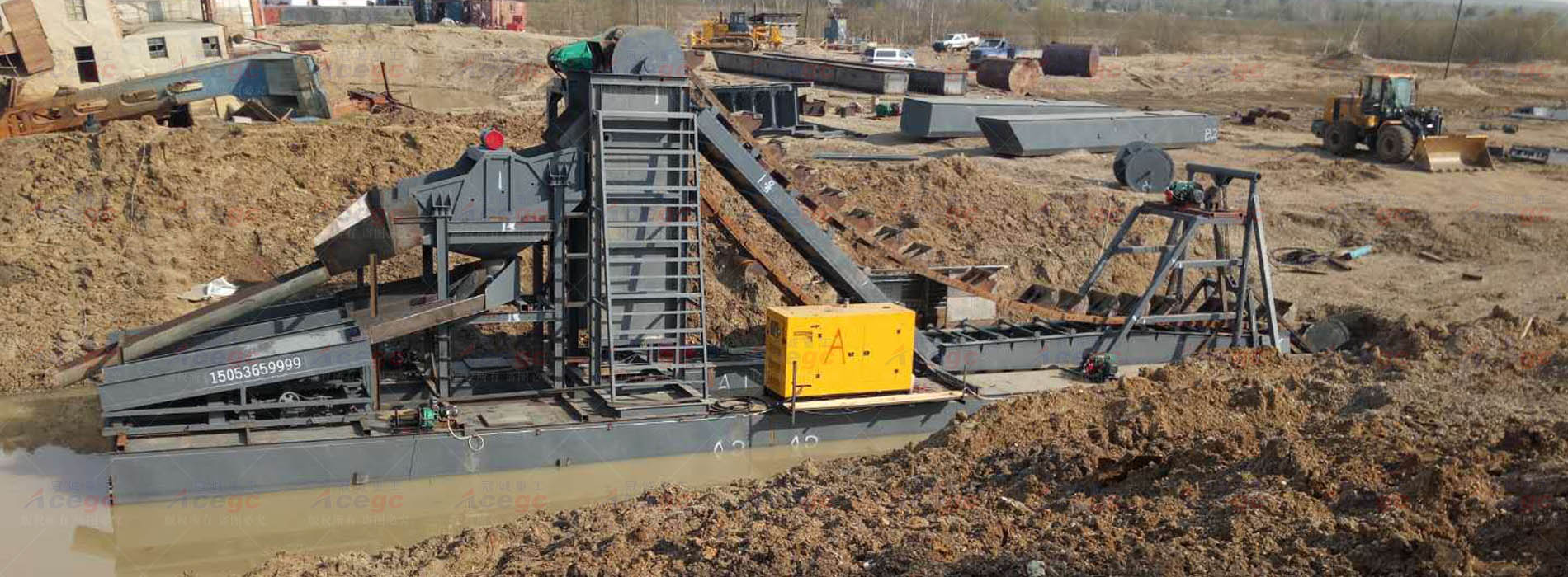 鼓動溜槽:是利用固定溜槽選金原理,加裝了一套橡膠板鼓動裝置,用機械鼓動底板,使底板上下周期鼓動,防止泥沙板結,周期性鼓動,完成分層和排沙,提高了沙金回收率。鼓動溜槽對毛細金和薄皮金效果非常好,且結構簡單,工作 可靠,故障少,能耗小,水耗小,是一種實用的沙金設備。